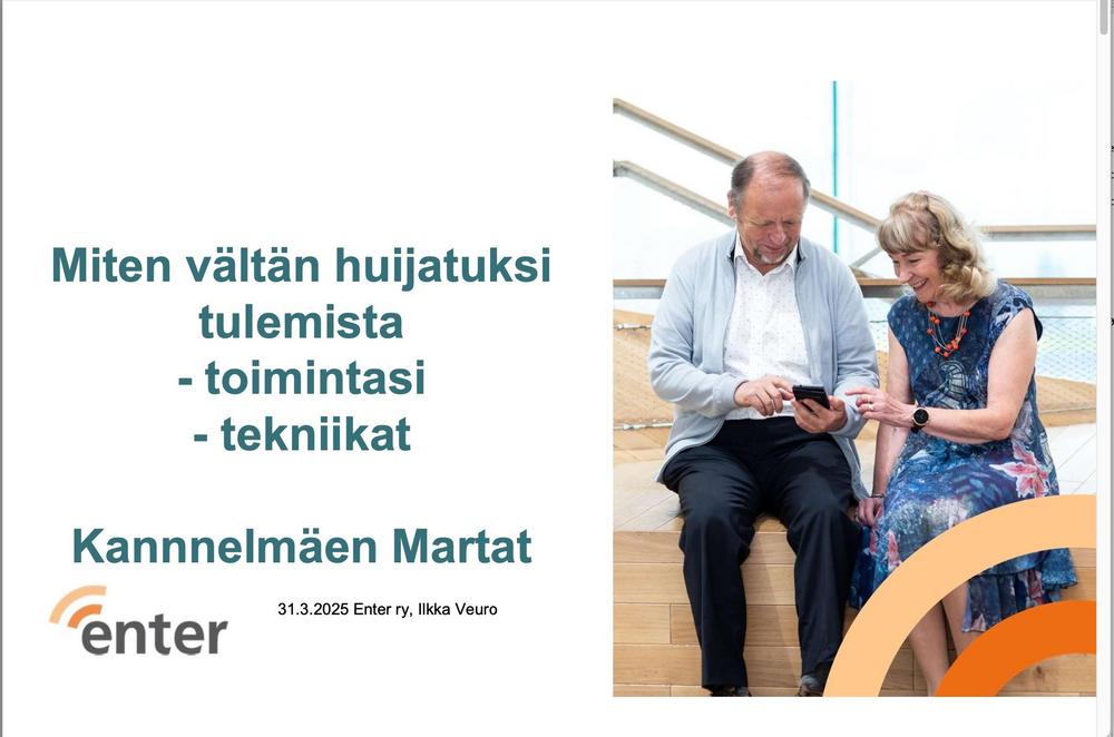 Maanantai 31.3. klo 17.30 Puhelinhuijaukset yms seniori-infoa ja miten toimia, Ilkka Veuro, Enter ry